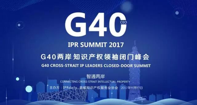 日前,由IPR Daily与首都知识产权服务业协会联合主办的2017年“G40两岸知识产权领袖闭门峰会”在北京亚洲大酒店举办。本次峰会聚集国内外顶级知识产权力量,是连接最优质企业与最优秀知识产权从业者的一大行业盛会。